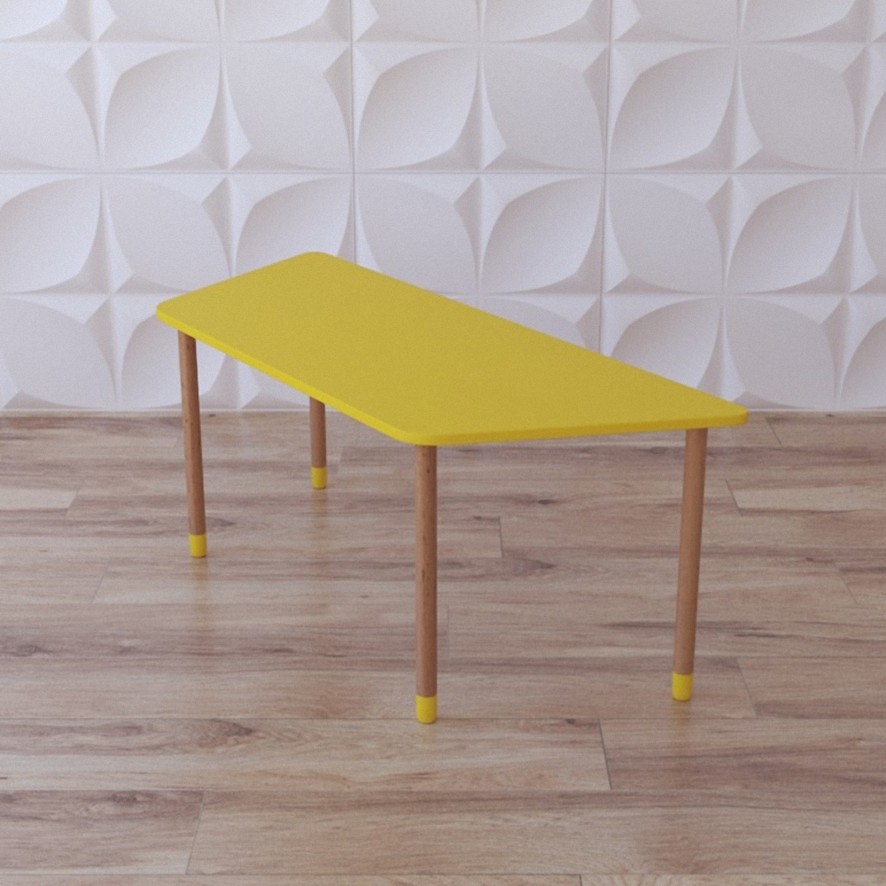Детский деревянный стол “Яркая трапеция” окрашен в спокойные цвета, которые не отвлекают от учёбы и имеет максимально простую конструкцию – состоит из 4 ножек и столешницы трапециевидной формы; необходим для обустройства индивидуальными учебными местами групп в ДОУ, начальных школ и школ искусств. Группа из таких столиков не только обеспечит учебными местами учреждение, но и украсит его, придав интерьеру законченный вид благодаря универсальному виду каждого из элементов группы.