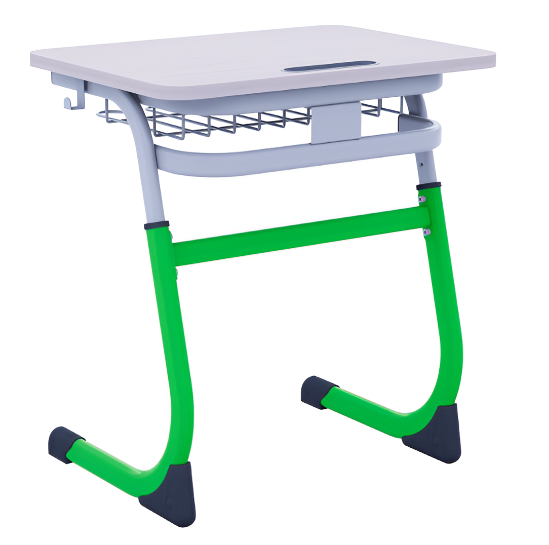 Парта SMARTY одноместная регулируемая по высоте имеет металлическое основание, ЛДСП столешницу со встроенным карманом, крючоч и сетку для принадлежностей.