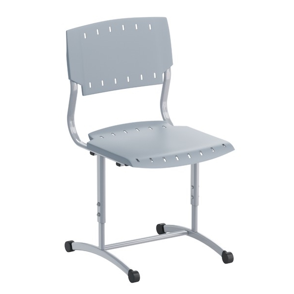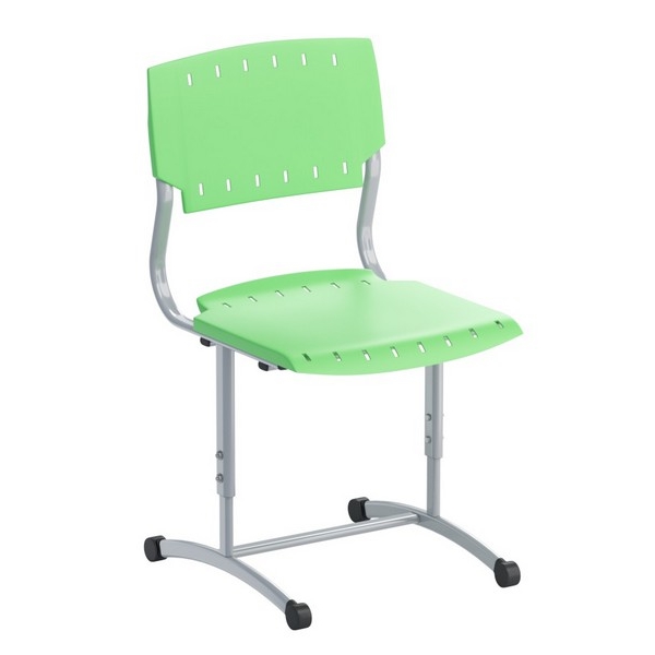 Стул ученический, регулируемый. Сиденье и спинка изготовлены из пластика методом литья. Спинка имеет изгиб в плане, все углы притуплены и имеют радиус закругления (габариты спинки 456х270 мм). Передний край сиденья имеет изгиб, все углы притуплены и имеют радиус закругления (габариты сиденья 456х410мм). Каркас стула состоит из двух подвижных опор и верхнего корпуса. Подвижные опоры выполнены сварными цельнометаллическими из плоскоовальной трубы и покрыты стойким полимерным покрытием. На свободных концах труб установлены заглушки из ударопрочных полимеров не повреждающих поверхность напольных покрытий.