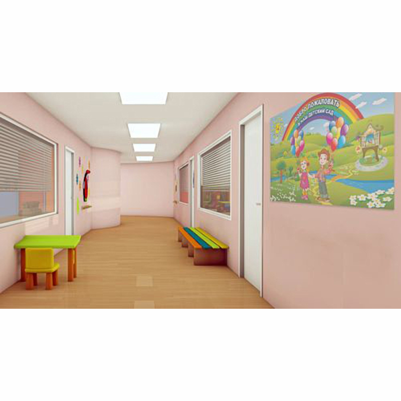 Не знаете, как красиво оформить главный вход в детский сад? Тогда предлагаем разместить именно этот стенд. Он изготовлен из прочного материала, имеет яркую картинку, его легко прикрепить к стене. Детей привлекут цветные шарики, яркая радуга на заднем фоне и солнце, которое греет своими лучами. Разглядывая этот стенд с детьми, можно повторять названия цветов, учить и закреплять счет, рассказывать о временах года. Малышам понравятся белые ромашки, которые расцвели на лугу, синяя речка и мостик через нее. Вдали виднеется домик. Кто же там живет? На эту тему дети с удовольствием будут сочинять свои истории.