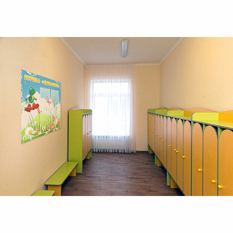 Для дизайна стенда выбрана природная тематика. На лугу растут красивые цветы, голубое небо разбавлено белыми облаками. Главным элементов дизайна является смешной светлячок в забавных ботинках красного цвета. Вокруг порхают бабочки. Название стенда оформлено в одну строку буквами желтого цвета. В изготовлении стенда используется качественная фурнитура, стойкие краски, высококачественный материал.
