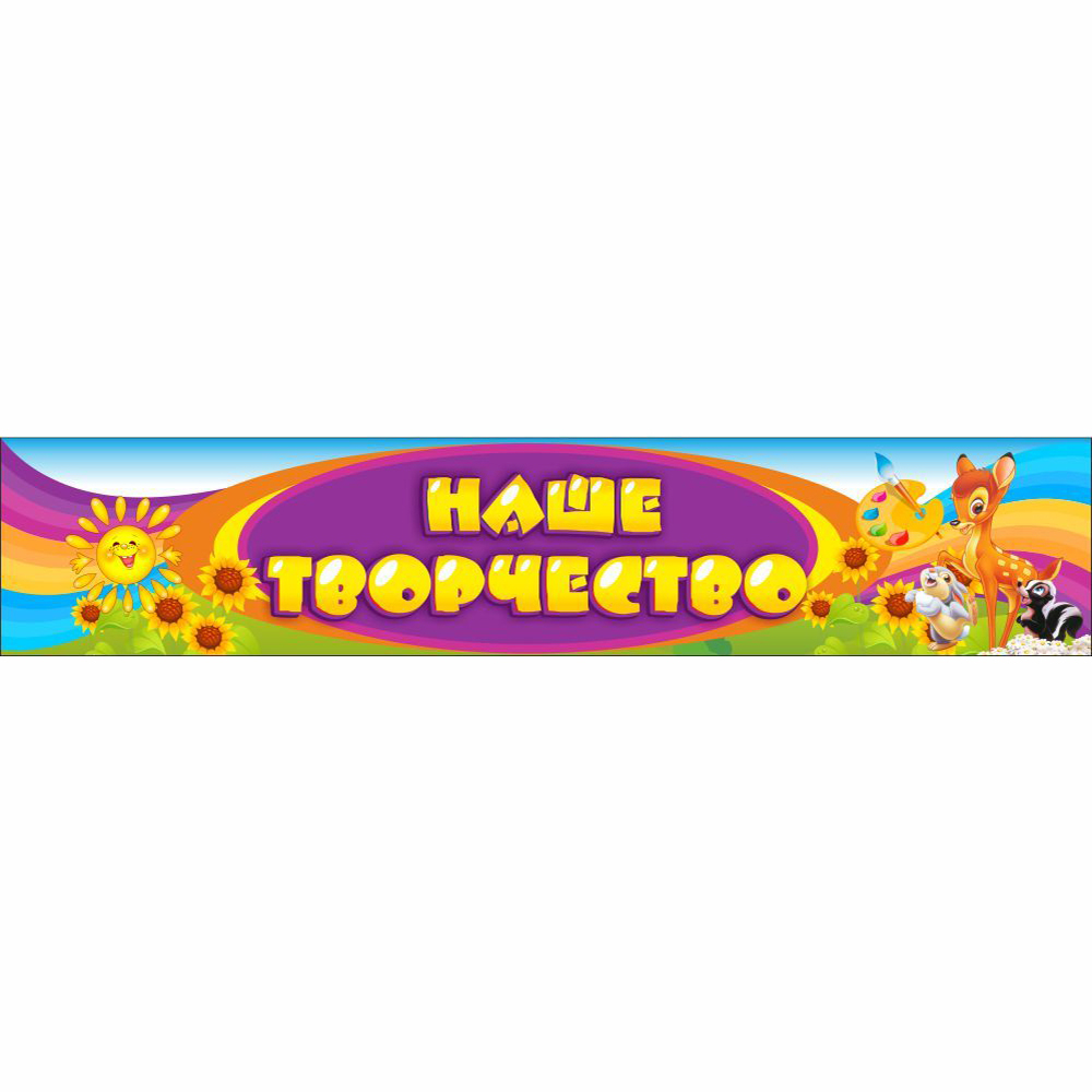Радуга и солнце, весёлые зверюшки и разноцветная палитра в окружении цветущих подсолнухов создают приподнятое настроение и привлекают внимание. Яркие желтые буквы названия на фиолетовом фоне сразу дают представление о назначении стенда. Этот стенд послужит отличным элементом для оформления уголка детского творчества в группе. Под ним можно расположить любые экспонаты: от рисунков и аппликаций до поделок из пластилина или бумаги.