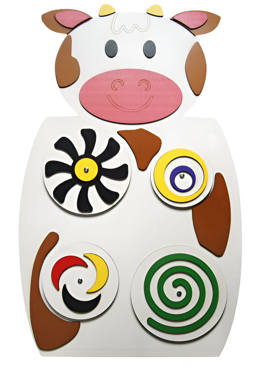 Настенный бизиборд, который будет интересен и увлекателен для детей разных возрастов. Его форма и изображение коровы познакомит ребенка с миром животных. Производитель позаботился о безопасности игрушки: она без острых углов и не оставляет заусенцы. Купить недорогой Бизиборд в виде белой коровки можно для дома, для дошкольных учреждений, для медицинских клиник и для развлекательных центров.