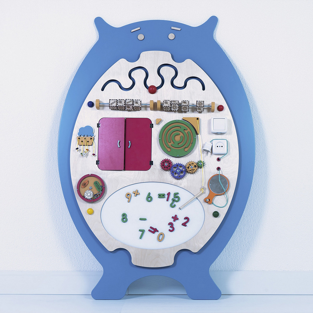 Развивающий сенсорный Бизиборд «Зёва» украсит стену любого образовательного учреждения. Необычный внешний вид непременно привлечет внимание детей, а встроенные развивающие элементы займут их внимание на долгое время.