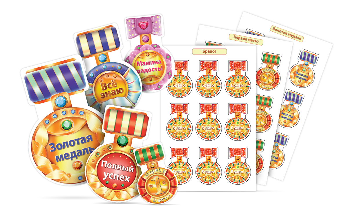 В отличии от обычных наклеек, они показывают ребенку, за что именно он получил награду. Смог произнести трудный звук — получи орден «За взятие звука», выполнил задание первым — «Золотую медаль» на грудь.
