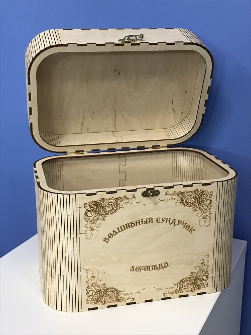 Удобный, вместительный деревянный сундук, включающий все необходимые материалы для формирования речевой деятельности у неговорящих детей.
