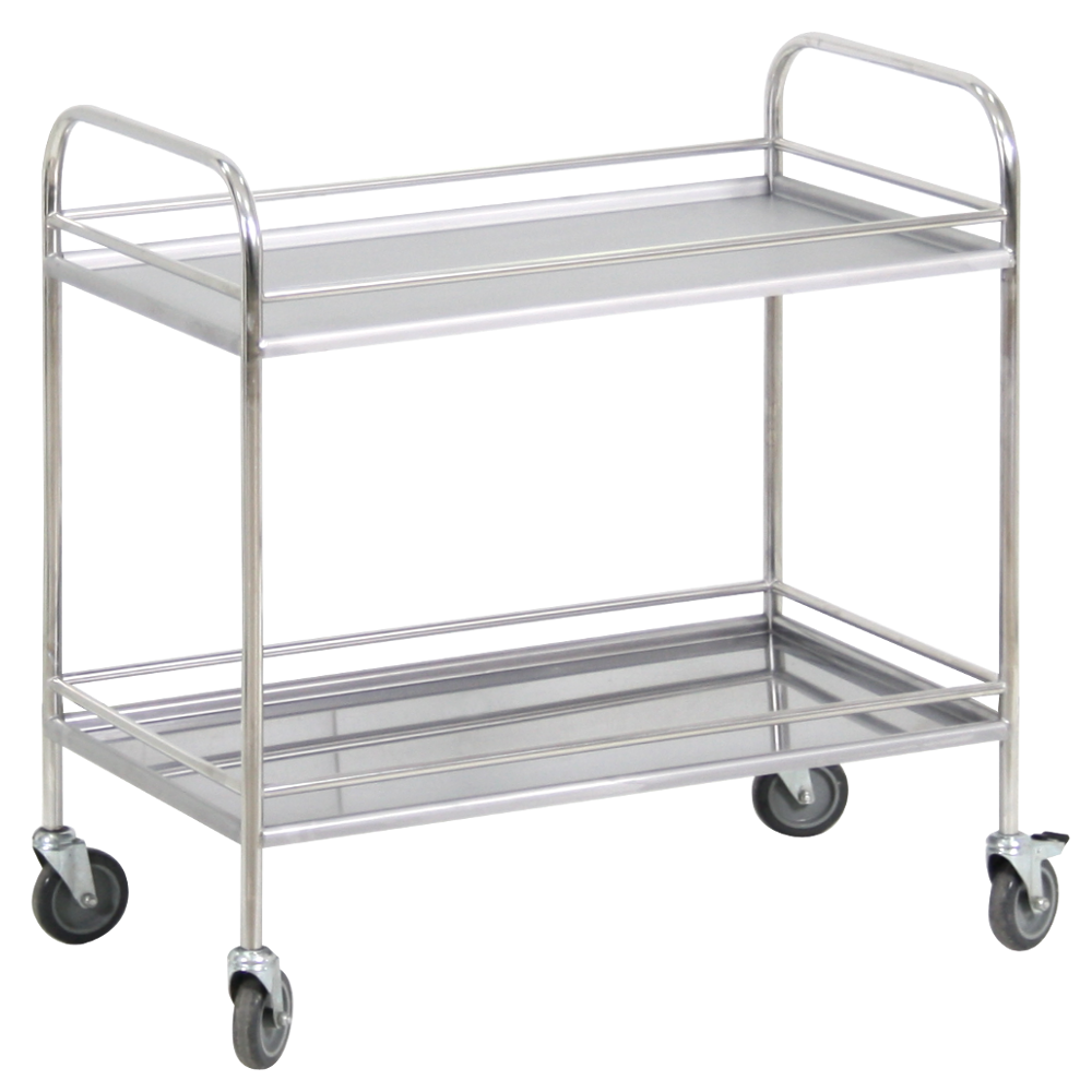 Главная Каталог Оборудование для медицинского кабинета Столик процедурный с двумя полками и бортиками передвижной из нержавеющей стали