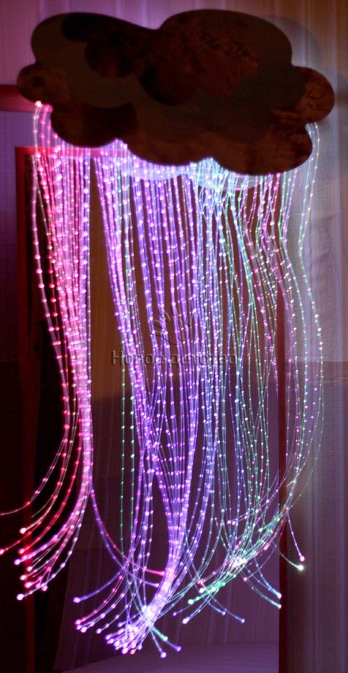 Настенное панно из АКП. Тучка, из которой идет дождь (60 волокон длиной 2 м). Разные режимы свечения.