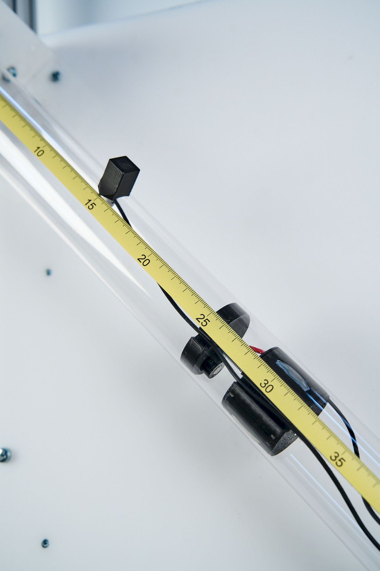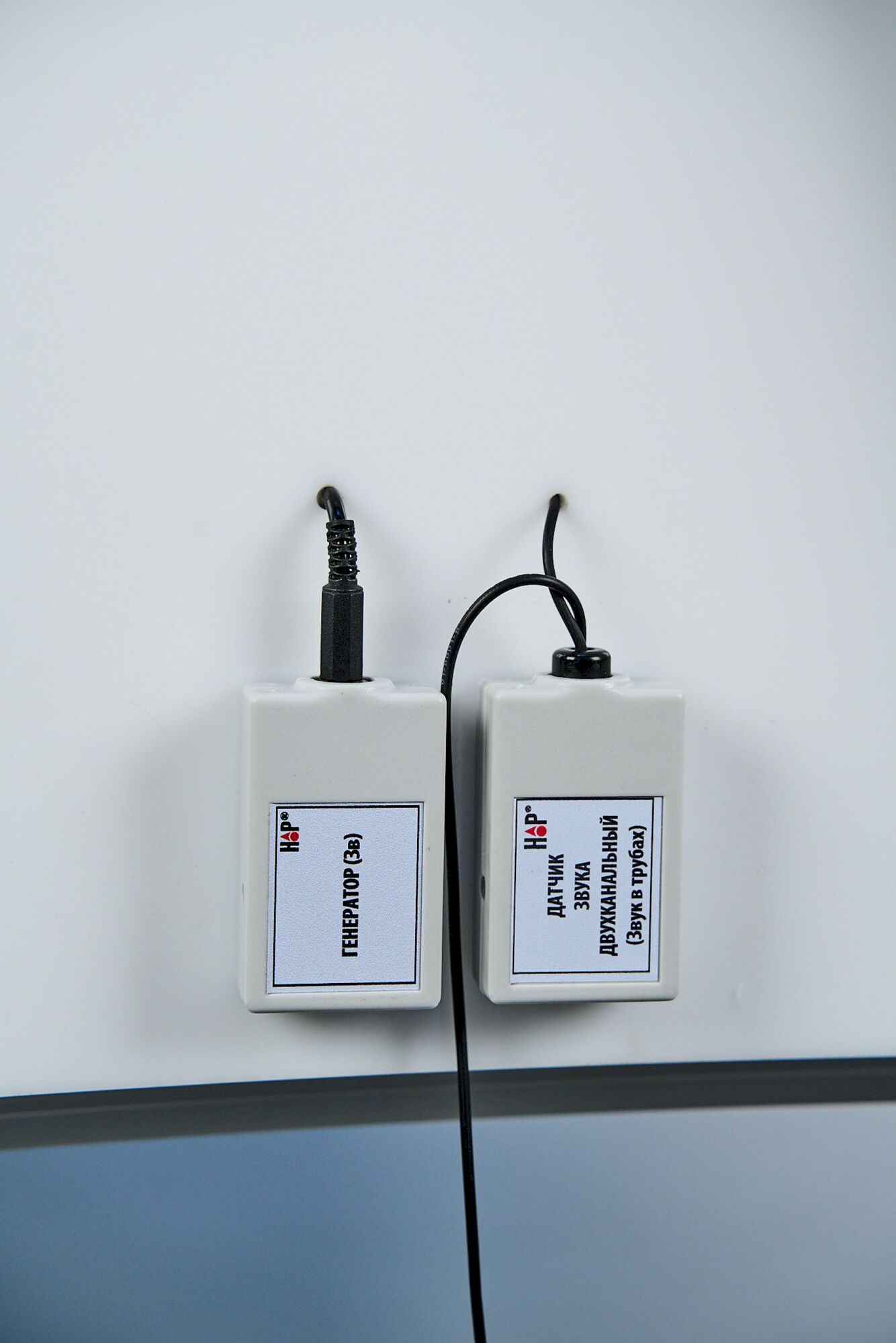 На каркасе из металлических труб установлена звуковая труба, в которой реализуется распространение звуковой волны и обеспечивается измерение скорости звука двумя методами. Контроль параметров звуковой волны в двух точках пространства осуществляется с помощью двухканального датчика звука, имеющего два микрофона. Конструкция установки позволяет перемещать одиниз микрофонов вдоль трубы и определять его координату по специальной шкале. Источником звука служит динамик, который под ключается к USB-порту компьютера и управляется с помощью программного обеспечения.