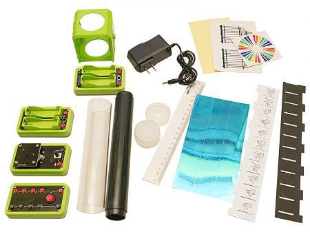 Переносной демонстрационный набор размещен в чемодане из прочного пластика и содержит необходимые материалы для выполнения не менее 18 экспериментов по данной теме: