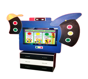 Этот интерактивный комплекс отличной подойдет для изучения с детьми ПДД в детском саду и ДОУ. Инженеры Новочеркасской фабрики интерактива декорировали корпус полифункционального комплекса макетами дорожных знаков и действующим светофором.