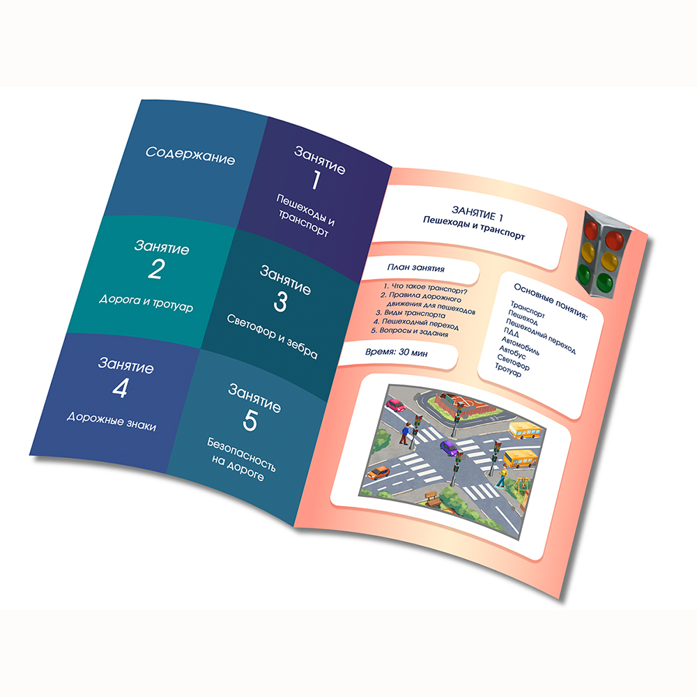Программное обеспечение имеет интуитивно понятный интерфейс, красочную компьютерную анимацию и голосовую озвучку каждого урока. После урока идёт несколько развивающих игр на усвоение полученных знаний – это викторины, сортеры, пазлы, обобщение-исключение, классификация и другие. Преподавателю не составит труда вовлечь малыша в процесс изучения ПДД, ведь это не нудная зубрёжка, а весёлый и увлекательный процесс с применением современных компьютерных технологий!