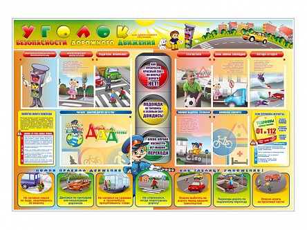 Стенд предназначен для ознакомления детей дошкольного возраста с правилами дорожного движения и безопасного поведения на дороге и формирования осознанного отношения к безопасности дорожного движения.