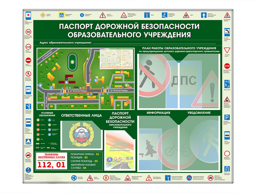 Главная Каталог Правила дорожного движения Магнитно-маркерные доски и стенды Стенд-уголок "Паспорт дорожной безопасности образовательного учреждения"