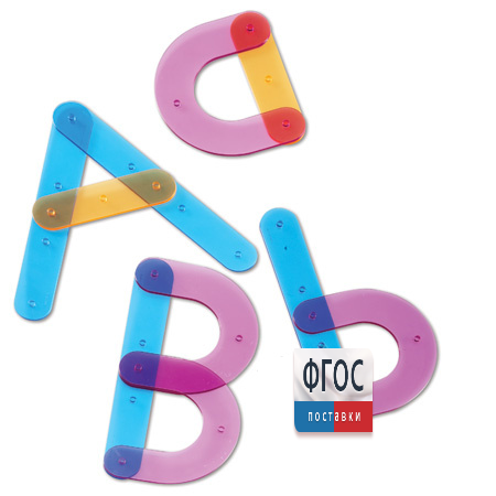 Возможности набора не ограничиваютс построением букв, можно собрать геометрические фигуры, цифры и простые линейные объекты. Фантазируйте вместе с ребенком!