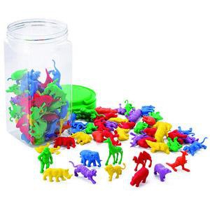 В наборе 120 фигурок диких животных в 6-ти ярких цветах 10 видов: кенгуру, медведь, носорог, верблюд, жираф, тигр, лев, слон, бегемот, орангутанг.