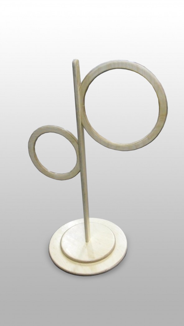 Снаряд для метания мяча в цель представляет собой деревянную конструкцию с двумя кольцами расположенными в вертикальной плоскости на разной высоте.