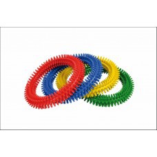 Массажное кольцо станет любимой и полезной игрушкой малышей - приятный запах, мягкая итальянская резина, яркий цвет - все это малыш не оставит без внимания. Маленькие пальчики с удовольствием перебирают мягкие «колючки» колечка. Имея 4 кольца – ваш малыш с легкость выучит 4 основных цвета: желтый, красный, синий, зеленый. Из колечек получается красивая пирамидка! Сначала постройте сами, малыш шустро разберет ее, а совсем скоро начнет сам ставить одно кольцо на другое. Из колечек можно сделать дорожку – маленьким ножкам понравиться такая игра.
