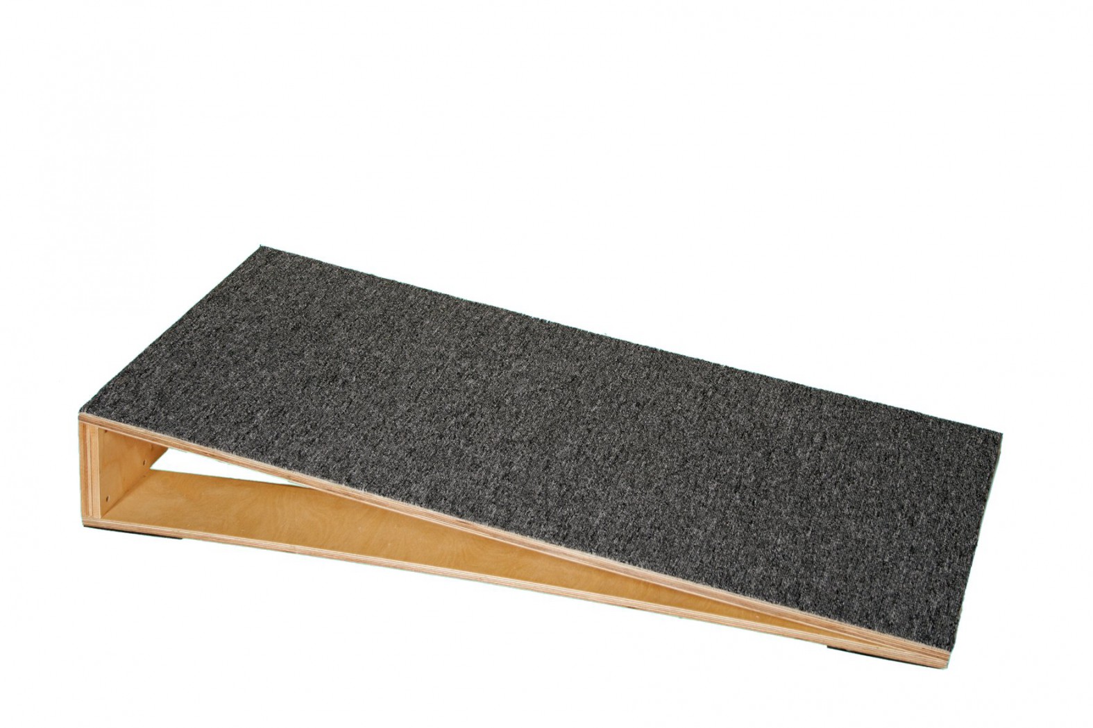 Представляет собой сборную конструкцию, состоящую из верхней площадки и основания (фанера 15мм), соединенных опорой из фанеры.  Площадка имеет ковровое покрытие, препятствующее скольжение ног во время выполнения прыжков.