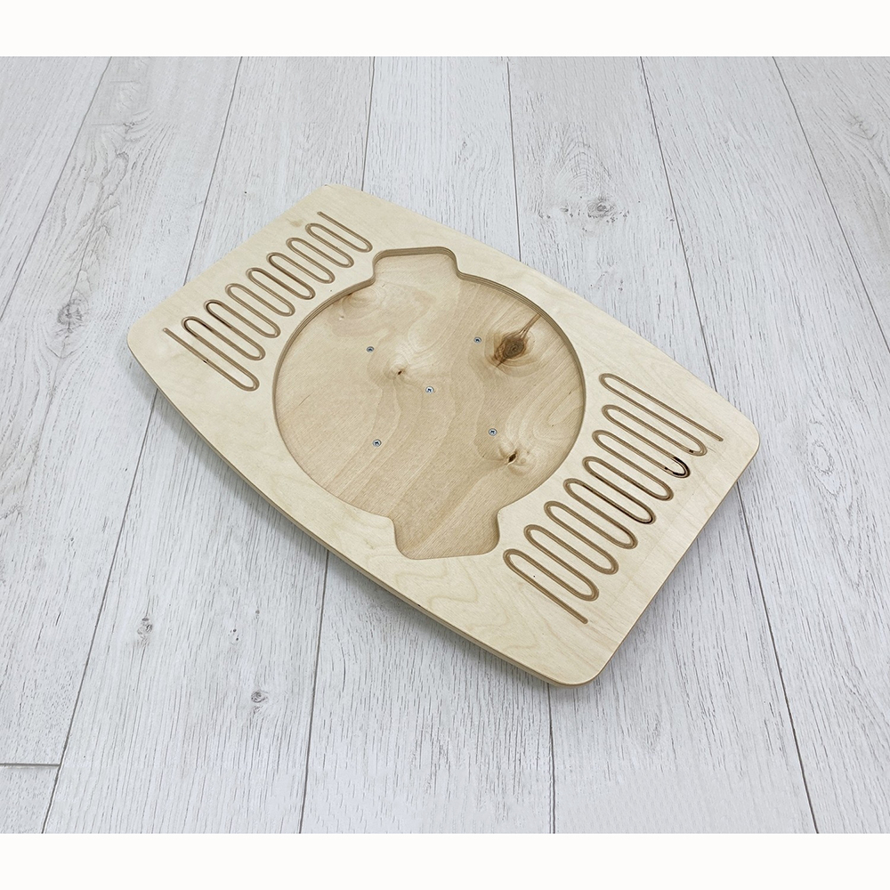 Это игровой тренажёр, улучшающий работу мозга через тренировку всего тела. Состоит из прямоугольной доски, закреплённой на неустойчивом основании в виде полусферы. В зоне ног ребристая змейка и противоскользящее покрытие. В центре балансира углубление под вставку-лабиринт. Её можно заказать отдельно.