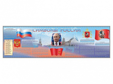 Настенное полотно представляет собой виниловую ткань, на которой размещена информация о флаге, гербе и гимне Российской Федерации и гербе города Москвы. Настенное полотно предназначено для ознакомления с символами России и формирования у учащихся любви к своей родине и твердой гражданской позиции.