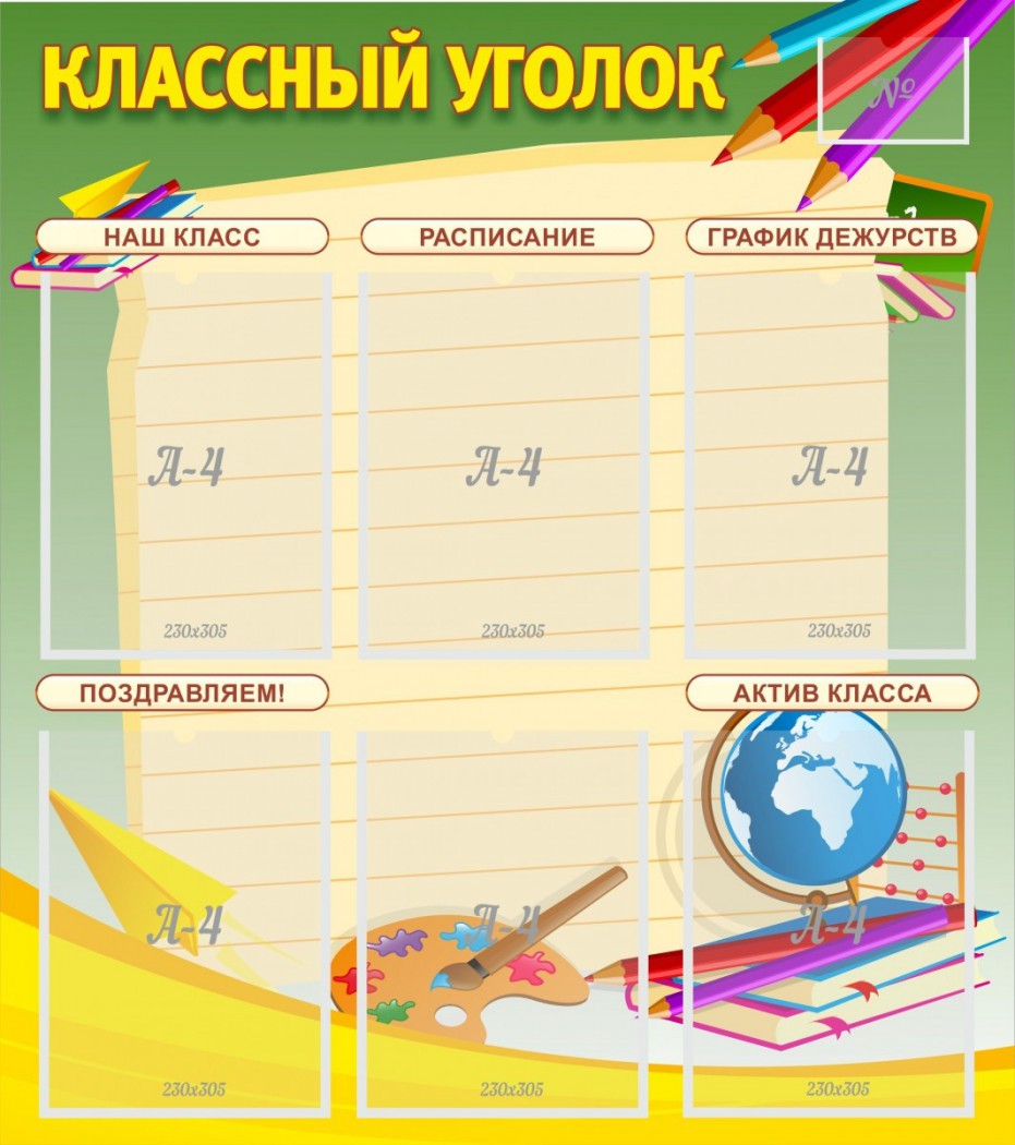 Каждый день, проведенный в школе, чем-то запоминается. Кому-то он запоминается уроками рисования, кому-то чтением, а кому-то геометрией. Такой стенд можно использовать в средней школе. В нем чудным образом сочетается детство с уже какой-то солидностью и деловитостью. В правом верхнем углу есть специальное место для обозначения класса. Он выполнен немного в шутливой форме с использованием разных рисунков бумажных самолетиков и мольберта для рисования. Такой стенд можно использовать в школе искусств. Стенд оборудован шестью карманчиками, которые не имеют конкретного фиксированного назначения. Такой стенд станет палочкой-выручалочкой для любого учителя.