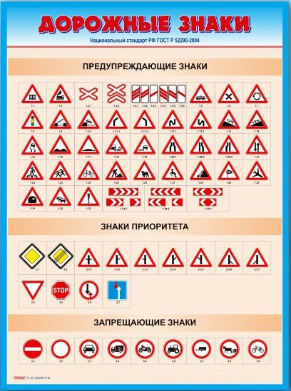 Стенды представляют собой информационные панели, на которых изображены дорожные знаки согласно ГОСТу Р 52290-2004.