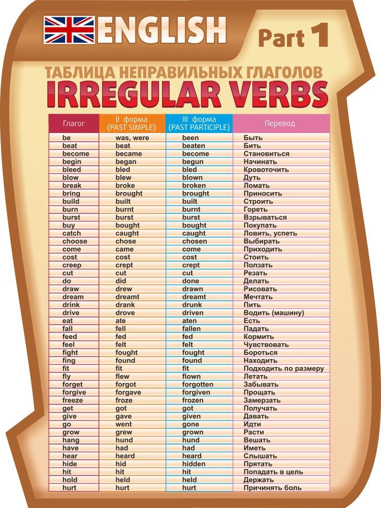 Главная Каталог Стенды Кабинеты Иностранные языки Стенд "Таблица неправильных глаголов, часть 1"