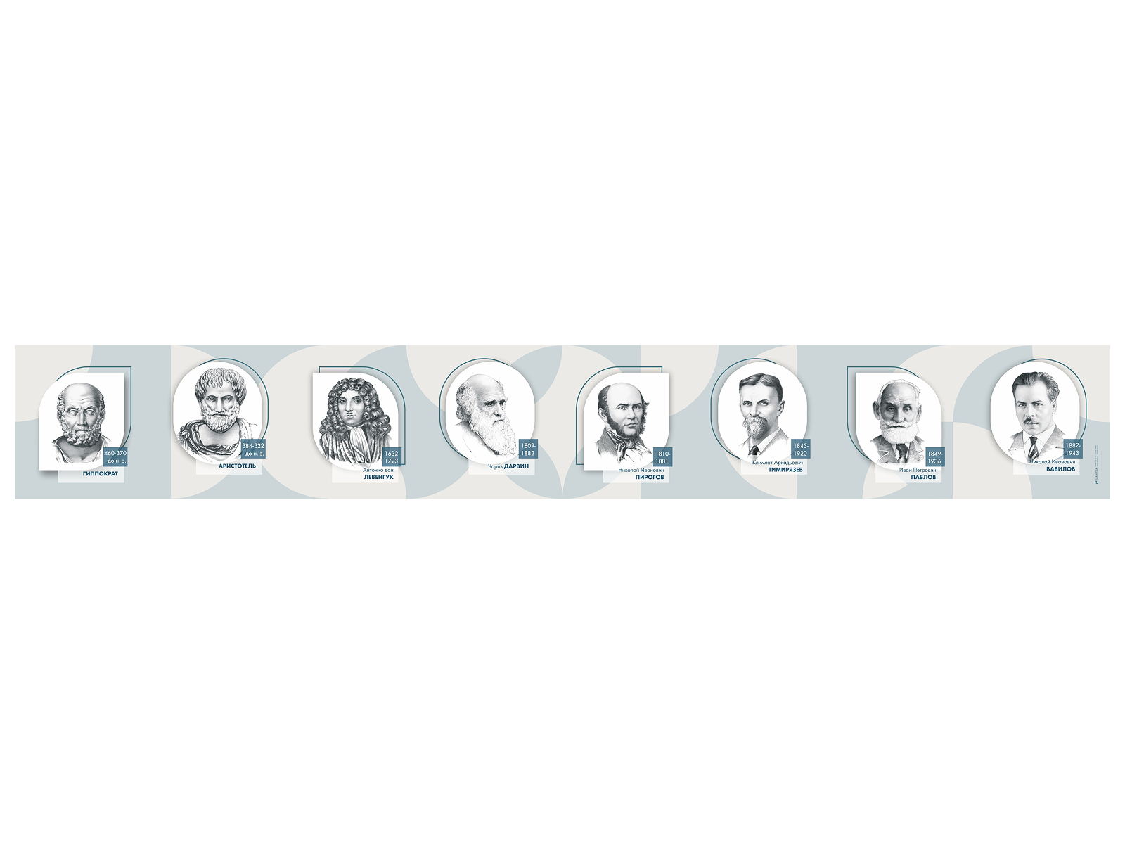 Стенд-лента представляет собой панель, на которой размещена информация о выдающихся ученых-биологах.