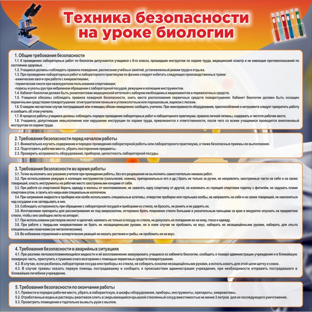 Стенд "Техника безопасности на уроках биологии" Вариант 1