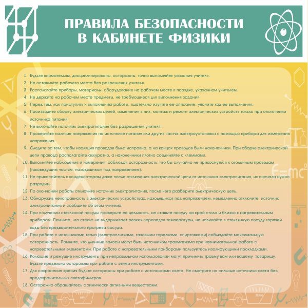 Стенд "Правила безопасности в кабинете физики"