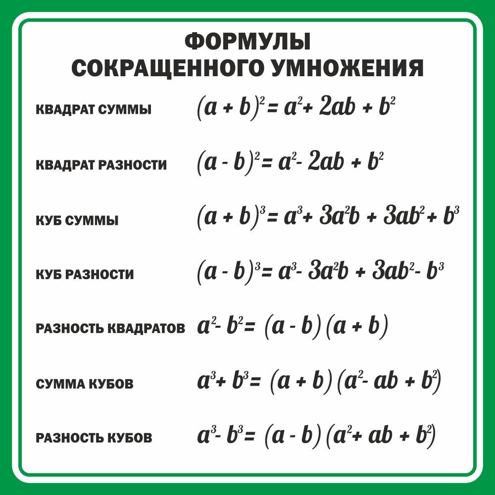 Стенд "Формулы сокращенного умножения" Вариант 2