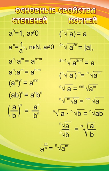 Стенд "Основные свойства степеней и корней - fgospostavki.ru - Махачкала