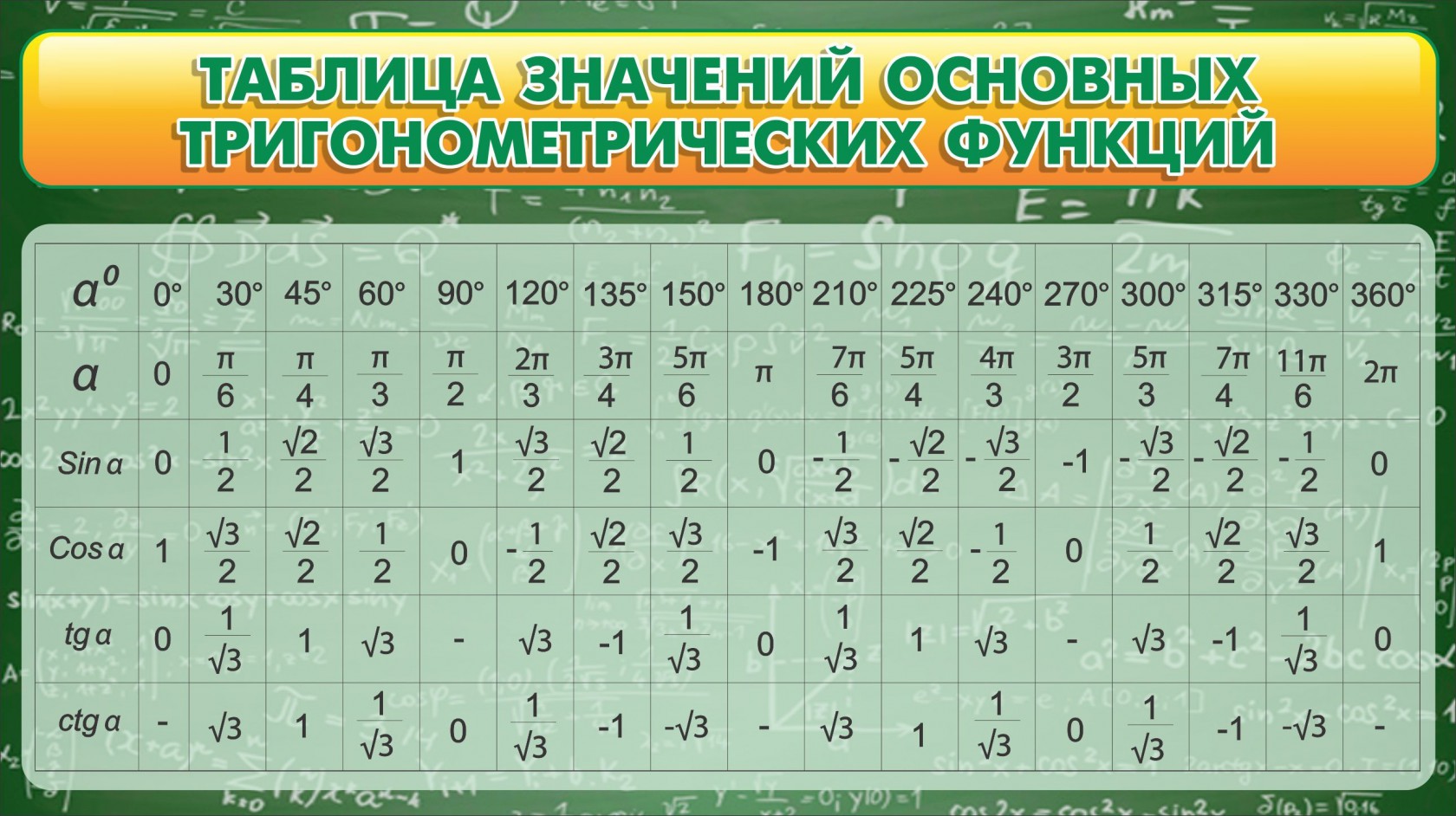Стенд "Таблица значений основных тригонометрических функций" Вариант 2