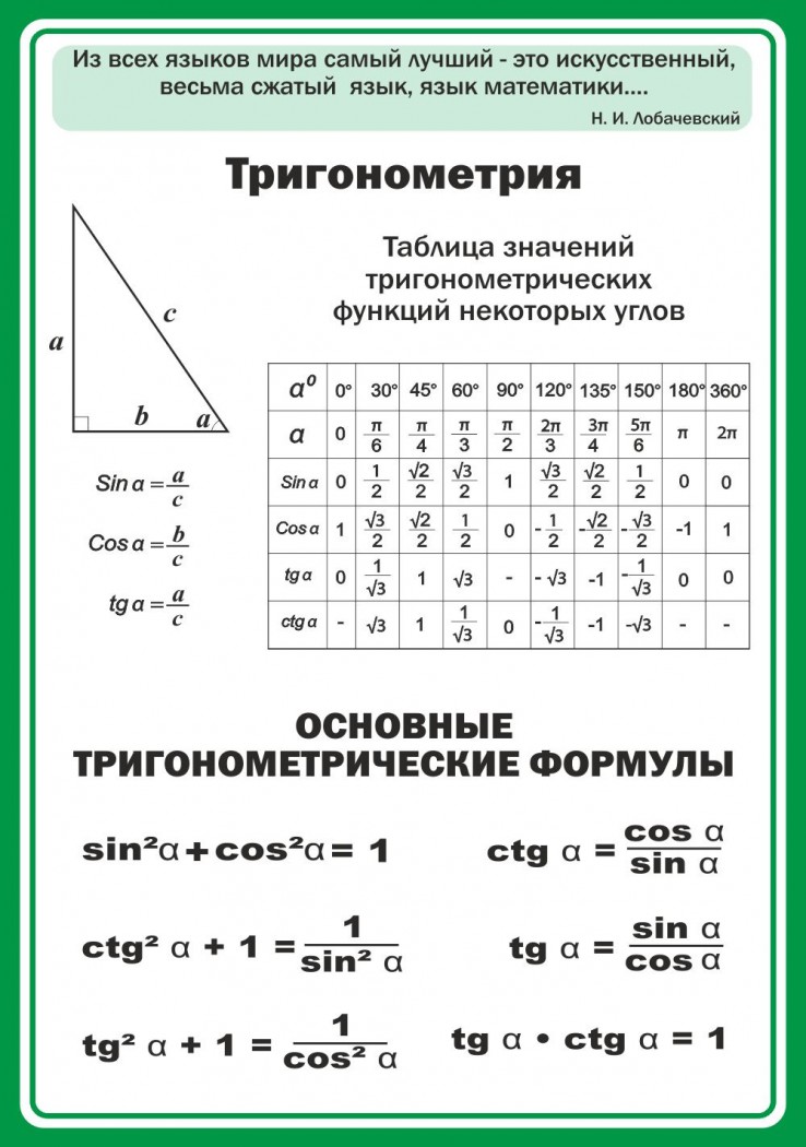 Главная Каталог Стенды Кабинеты Математика Стенд "Тригонометрия" Вариант 2
