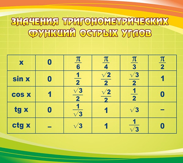 Стенд "Значения тригонометрических функций острых углов" - fgospostavki.ru - Махачкала