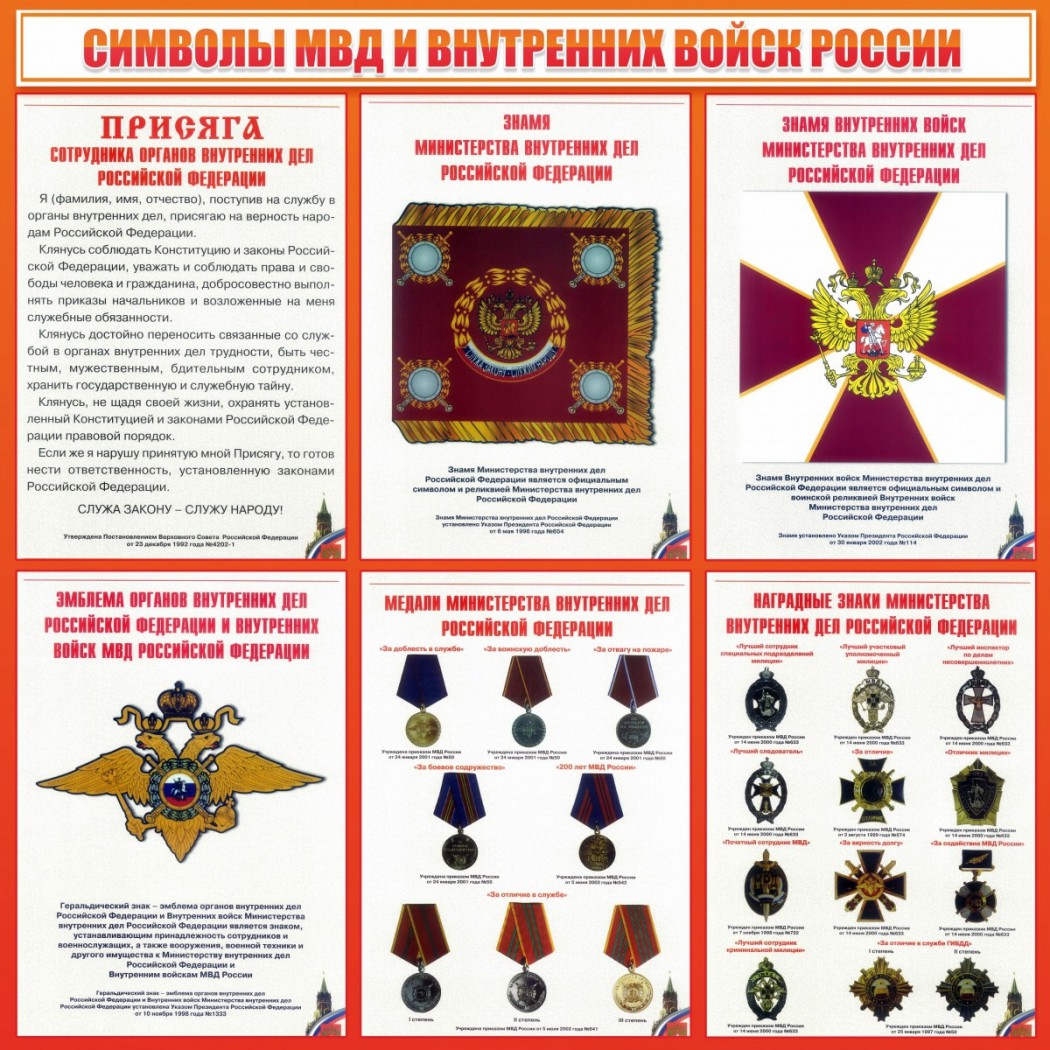 Главная Каталог Стенды Кабинеты ОБЖ и НВП Стенд "Символы МВД и внутренних войск России"