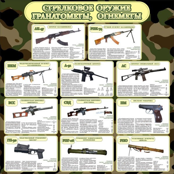 Стенд "Стрелковое оружие гранатометы, огнеметы" Вариант 1