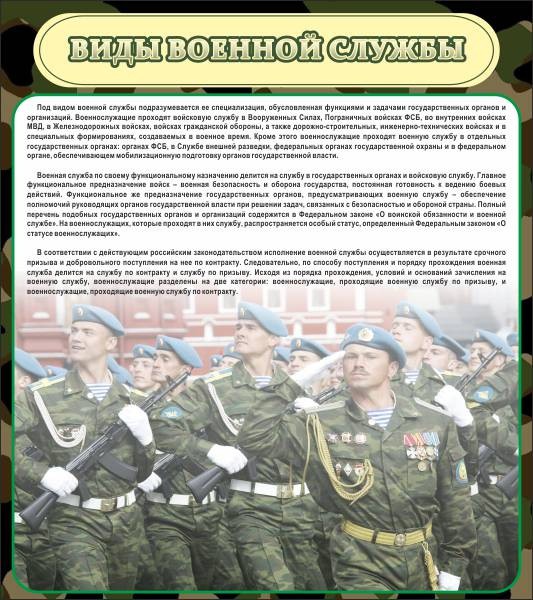 Стенд "Виды военной службы" - fgospostavki.ru - Махачкала