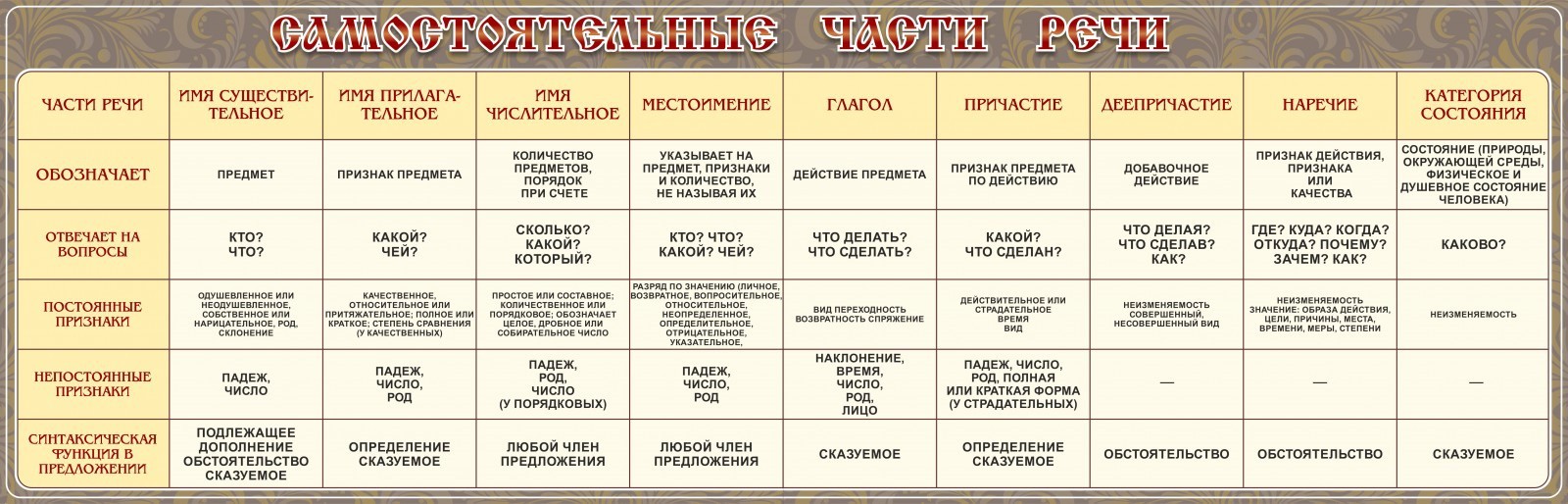 Стенд "Самостоятельные части речи" Вариант 1