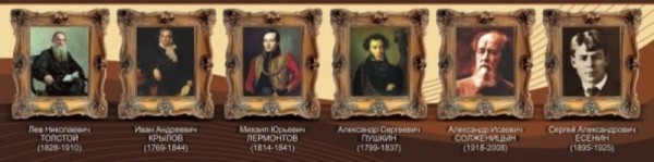 Одна из основных нравственных опор русских людей — это русская литература, которую уже ни один год как ввели в обязательное изучение школьной программы. Сегодня в современных школах каждый преподаватель литературы и русского языка у себя в кабинете старается разместить стенд «Великие писатели и поэты», где удачно расположены поэты и писатели с известными всем фамилиями - Пушкин А.С, Некрасов Н.А, Достоевский Ф.М и т. д. Разместив такой стенд в кабинете литературы, преподаватель демонстрирует учащимся облик поэтов, а также привлекает их к чтению и изучению русской поэзии, что, несомненно, отражается на изучении данного предмета.