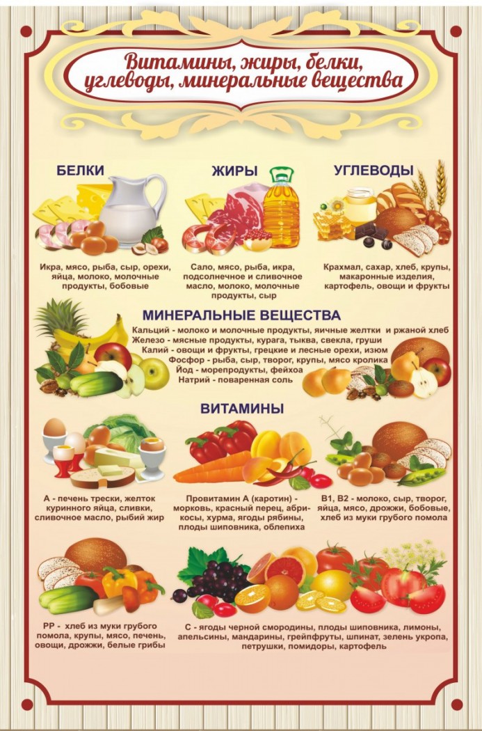 Стенд "Витамины, жиры, белки"