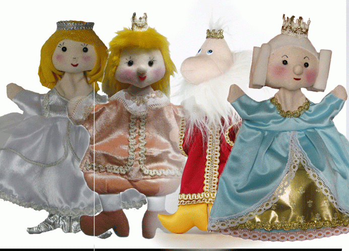 Набор состоит из 4 перчаточных кукол: Принцесса, Принц, Король, Королева.