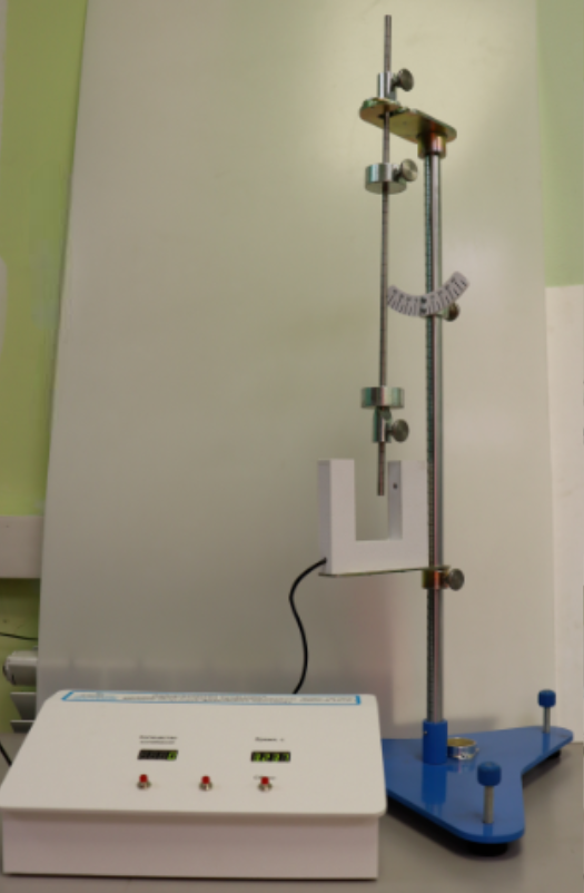Лабораторная установка «Определение ускорения свободного падения методом оборотного физического маятника» предназначена для исследования гармонических колебаний физического маятника и определения ускорение свободного падения методом оборотного маятника.