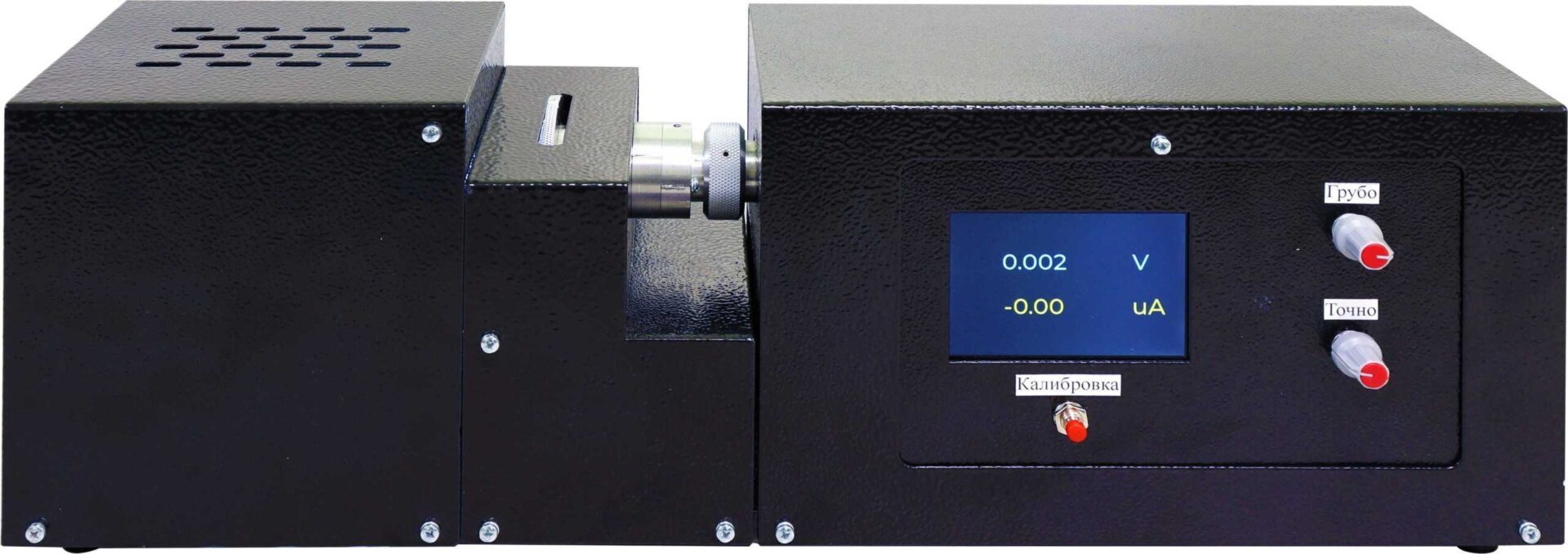 Оба поляризатора собраны в одном узле, и установлены соосно с фотоэлементом. Один поляризатор жестко закреплен, а второй имеет возможность поворачиваться на девяносто градусов, и оснащен фиксатором предотвращающим чрезмерное проворачивание и фиксацию в положение ноля градусов и девяносто градусов.
