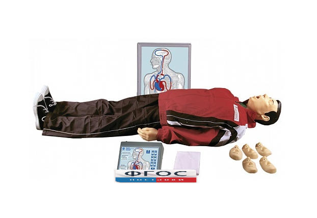 Тренажер представляет собой полную модель человека и предназначен для отработки навыков оказания экстренной доврачебной помощи.