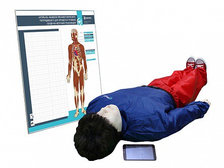 "Игорь-02" манекен-тренажер взрослого пострадавшего для отработки приемов сердечно-легочной реанимации (голова, туловище, конечности) с беспроводным планшетным компьютером и настенным анатомическим табло
